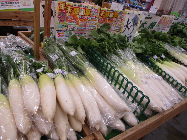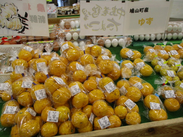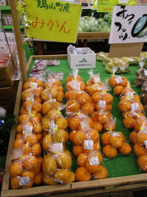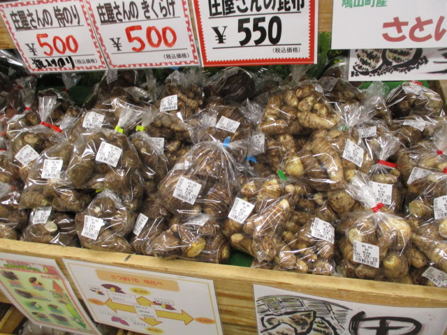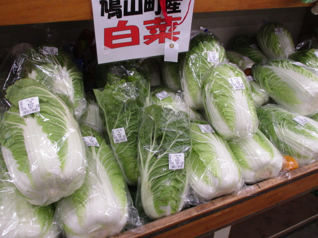 店内の地元産の野菜では、里芋や長ねぎ、みかん、ブロッコリー、白菜等が並んでいます。