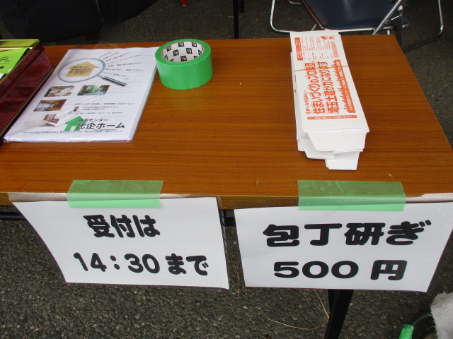 外売りコーナーでは、金峰みかんの試食販売をはじめ、干物販売(あじ、さば、真ほっけ、鮭フィーレ8枚切)、包丁研ぎを行なっています!