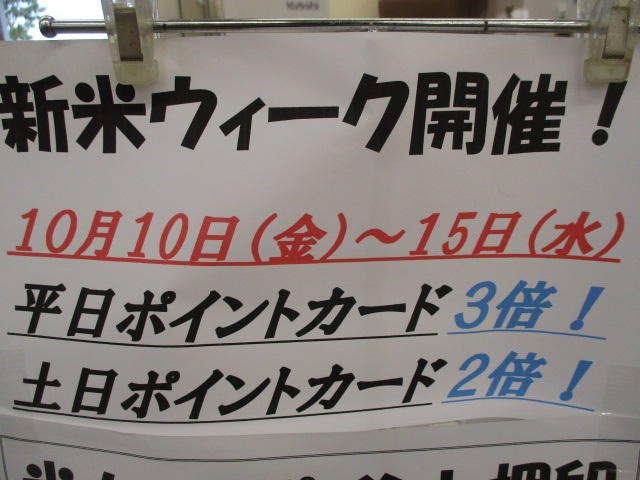 本日新米ウィーク最終日です!お米カードのポイント3倍です!