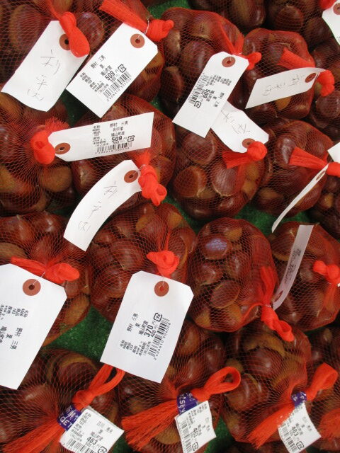 地元産の野菜も入荷しております。栗、柿、なす、きゅうり、ピーマンといった旬の野菜や常用野菜が並んでいます。