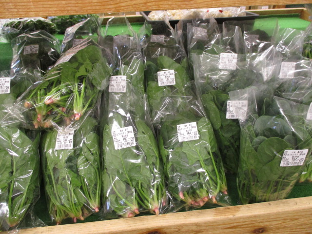 地元産の野菜では、ヤーコンやほうれん草、大根、長ねぎ等が並んでいます。