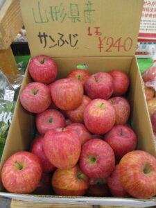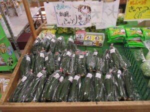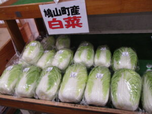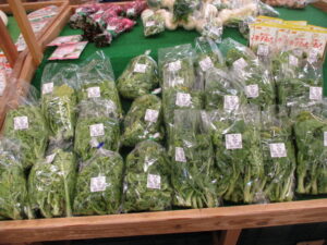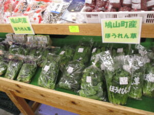地元産の野菜では、ほうれん草、白菜、菜花、吉見町産のきゅうりが並んでいます。