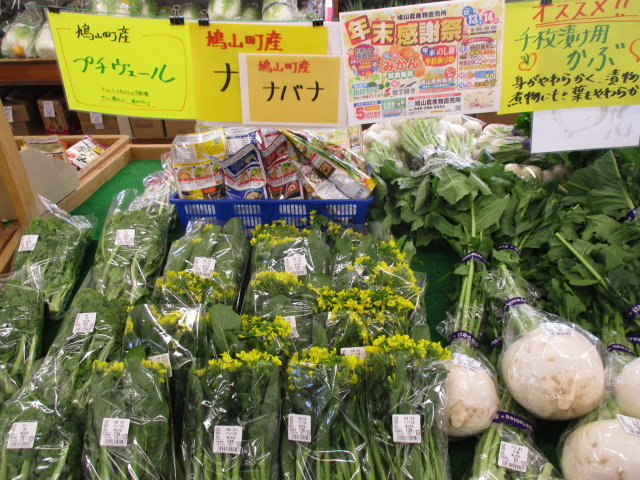 他にも鳩山産の白菜や大根、ナバナ、ほうれん草、長ねぎ等が並んでいます。