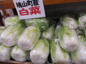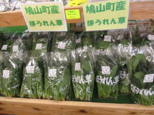 また、鳩山産の長ねぎや里芋、白菜、ほうれん草、菜花等が並んでいます。