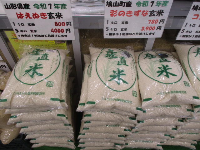 鳩山直売所では、4種類のお米を取扱っています。(コシヒカリ、彩のきずな、彩のかがやき、はえぬき)