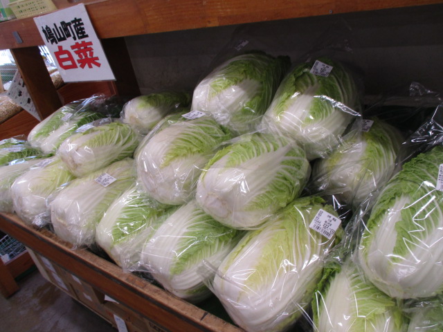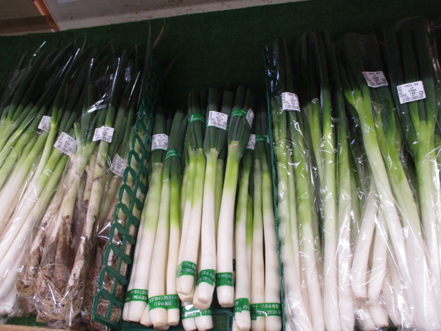 地元産の野菜では、長ねぎや白菜、大根、ほうれん草等が並んでいます。