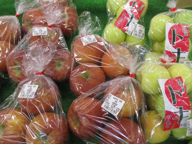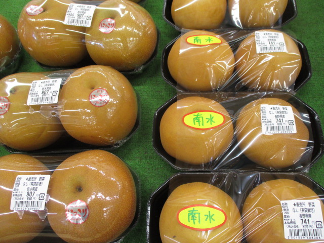 果物では、種なし柿やりんご(秋映、トキ、シルクスイート)、梨(あきづき、にっこり、南水)が入荷しています。
