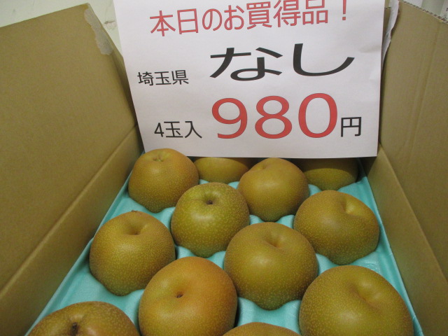 本日は大雨ですので、桃と梨とシャインマスカットを店頭特価販売します!