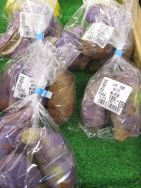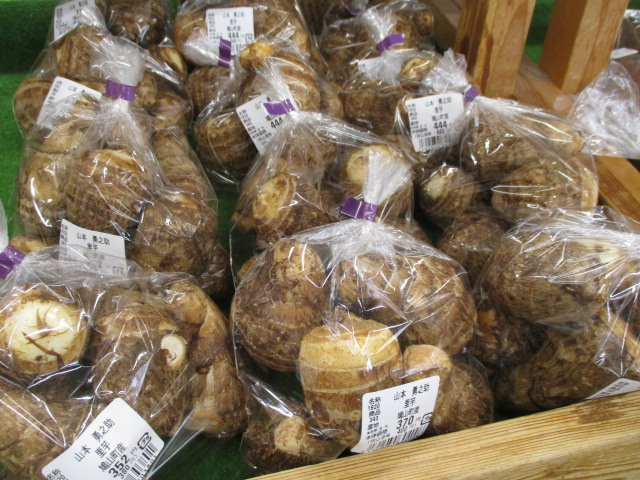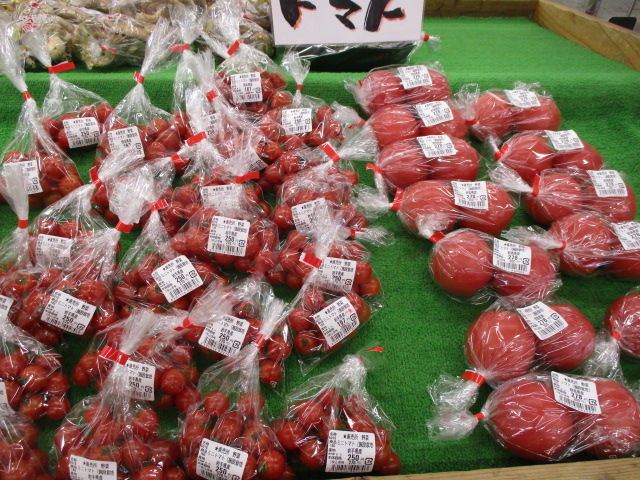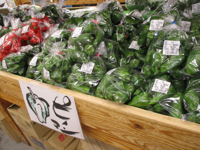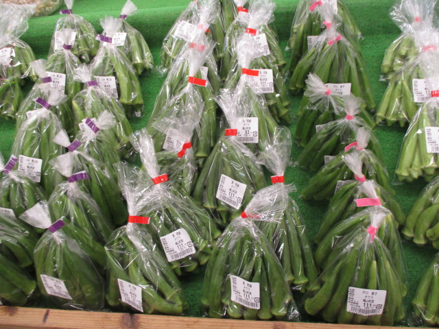 地元産の野菜では、つるむらさきやきゅうり、ピーマン、里芋等が並んでいます。