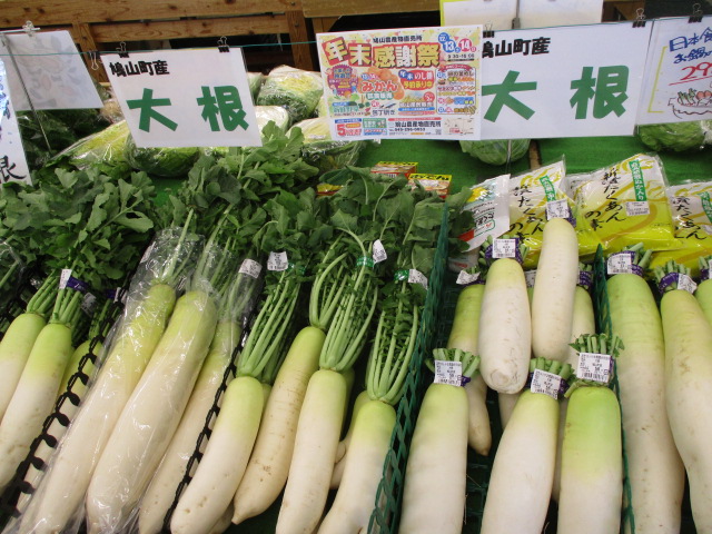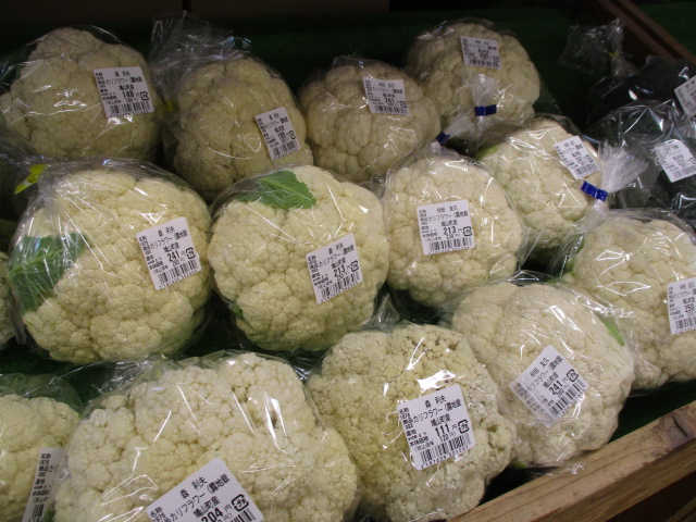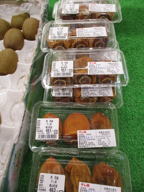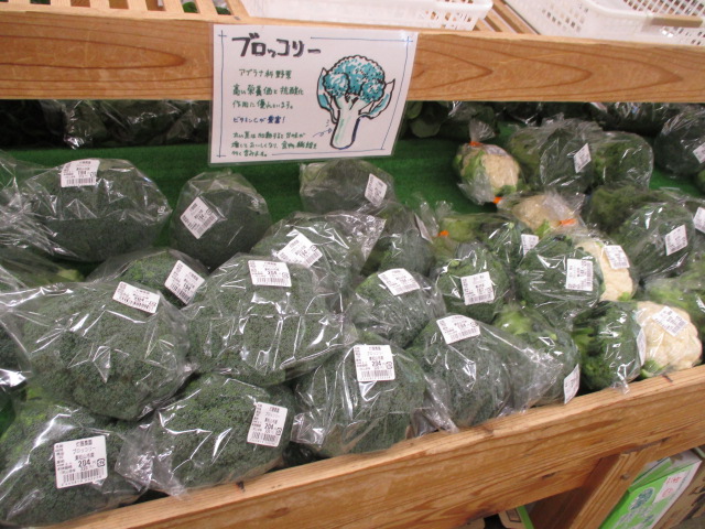 地元産の野菜では、サニーレタスが初入荷で、人参やブロッコリー、カリフラワー、干し柿、椎茸等が並んでいます。