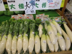 他にも地元産のほうれん草や菜花、キャベツ、白菜、大根等が並んでいます。