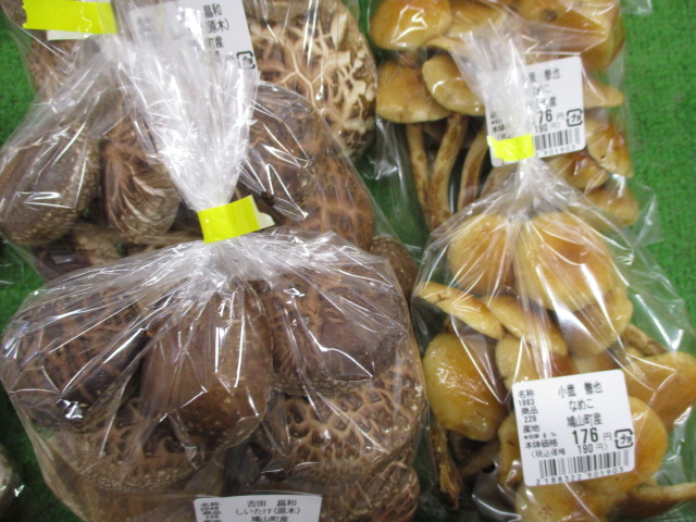 その他、椎茸やナメコといったキノコ各種や白菜、ほうれん草等も並んでいます。是非お買い求めください!