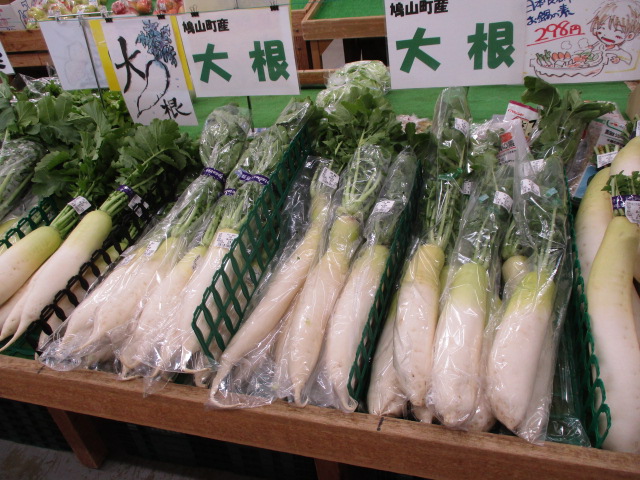 他にも鳩山産のほうれん草や里芋、大根、かぶ等が並んでいます。