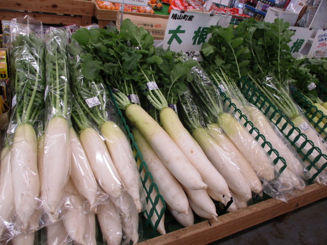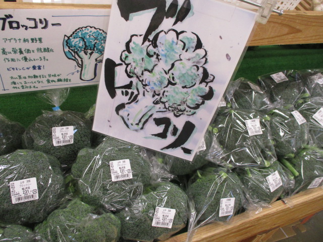 地元産の野菜では、ブロッコリーや大根、里芋、白菜、長ねぎ、椎茸等が並んでいます。