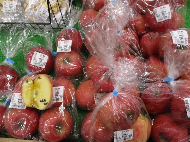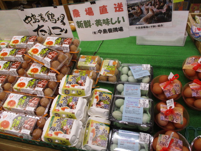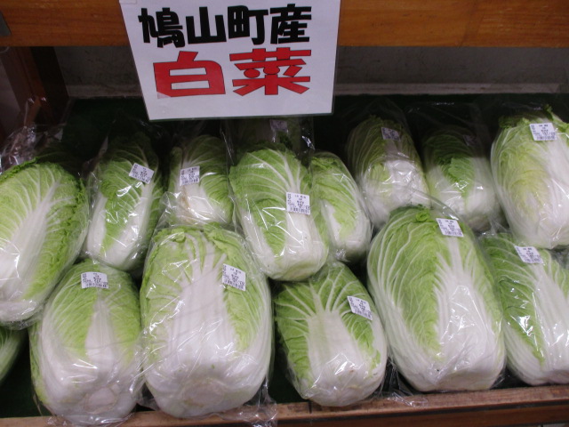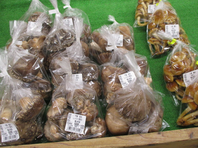 地元産の野菜では、椎茸やほうれん草、白菜やかぶ等が並んでいます。