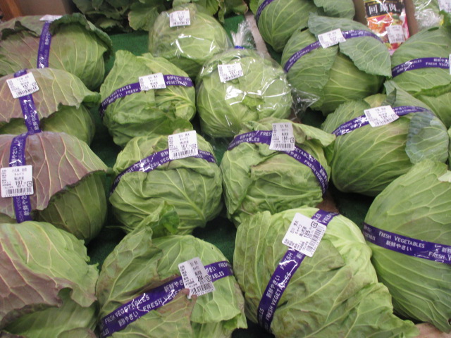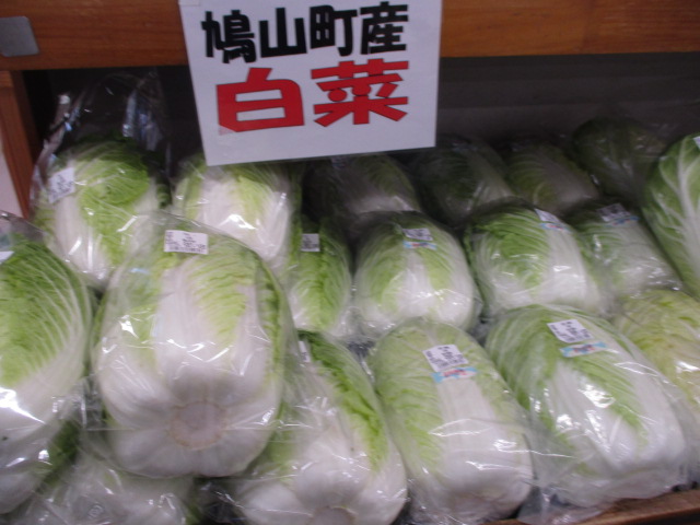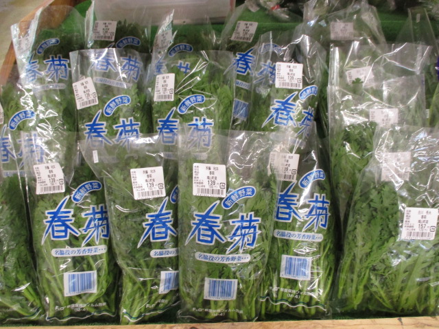 地元産の野菜では、春菊やキャベツ、ほうれん草、大根、白菜等が数多く並んでいます!