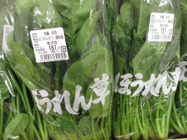 本日売場には、里芋、白菜、大根、ほうれん草を中心に様々な地元産新鮮野菜が入荷しておりますよ。