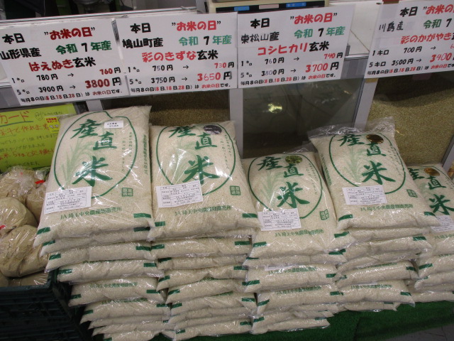 鳩山町産のお米(彩のきずな)では、玄米5㎏が3750円→3650円となっております!