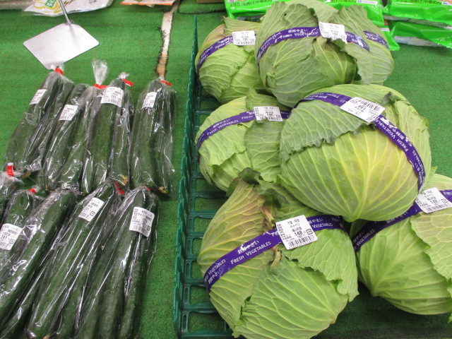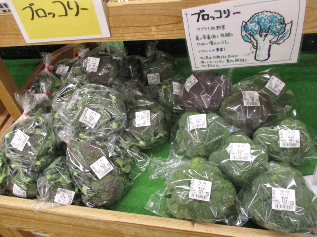 地元産の野菜では、大根やキャベツ、ブロッコリー等が並んでいます。