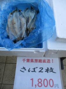 本日も干物販売を行なっています!種類は、さば・あじ・真ほっけがあります!