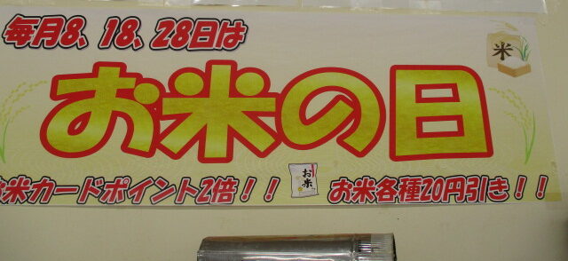 お米の日は、5㎏100円引きとお米カードのポイント2倍です!