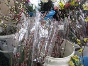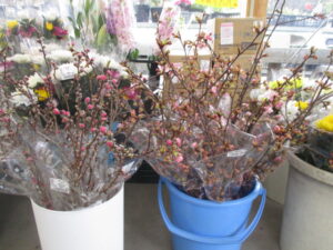 おはようございます。本日も、地元東秩父産の野菜や果物・手作りまんじゅう・こんにゃく・加工品等が店頭に並んでおります。梅や桜・花桃などの切花も入荷しております。