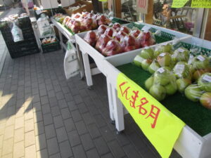 おはようございます。寒くなり、山の景色も変わって色づいてきました。地元産の野菜、みかんが入荷しております。今日は外売りのほうもやっております。皆様のご来店をお待ちしております。