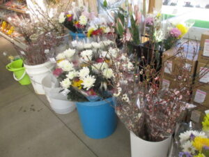 おはようございます。地元産野菜、切り花等が入荷しています。皆様のお越しをお待ちしております。