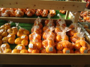 おはようございます。まだまだ朝晩は寒い日が続いております。今日も生産者より新鮮な野菜・果物・加工品が入荷しております。白菜・長ねぎ・キャベツ等の野菜類、みかん等の果物、手作りこんにゃく・手作り味噌・おやき・手作りまんじゅう・コロッケ等の加工品が出揃っております。また、食事等がフードコートでも楽しめます。