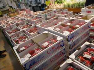 本日も、『あまりん・べにたま・紅ほっぺ・とちおとめ・やよいひめ』などの『いちご』大量入荷中!