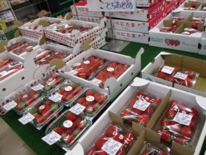 店内では『いちご(とちおとめ・べにたま・あまりん・紅ほっぺ)、ブロッコリー、大根、ほうれんそう、小松菜、カリフラワー、人参、ねぎ、白菜、里芋、八ツ頭、しいたけ』などの川島町産農産物や『弁当、惣菜、うどん、もち』などの手作り加工食品、『切花、鉢花』などが入荷しております。