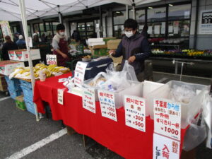 店外では『ネイブルホリコシの落花生等、旬な果物の試食販売』も開催中!