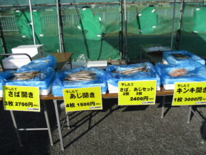 店頭では果物(甘平、せとか、はるみ、りんご等)、干物を販売しております。