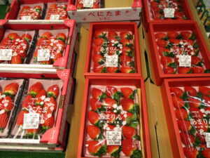 いちご、小松菜、白菜、たまご等、品揃えが豊富な店内となっております。