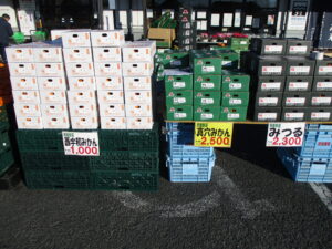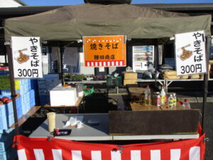 店頭ではみかん、りんご等の果物、勝田商店の焼きそばを販売しております。