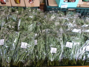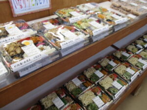 川島町産のしいたけ、春菊、白菜等の野菜、手作り弁当も入荷しました。