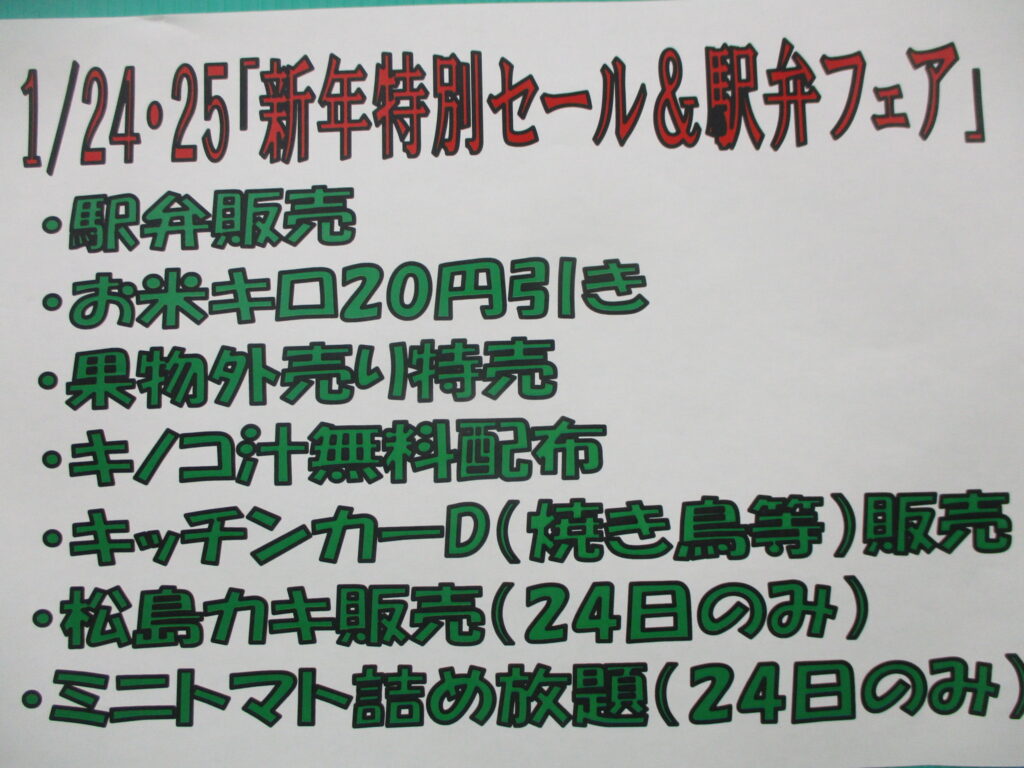 今日と明日の2日間「新年特別セール・駅弁フェア」を開催致します。