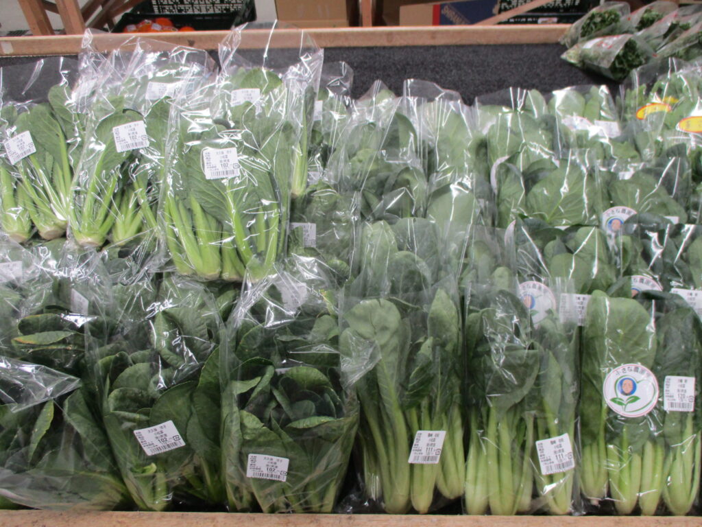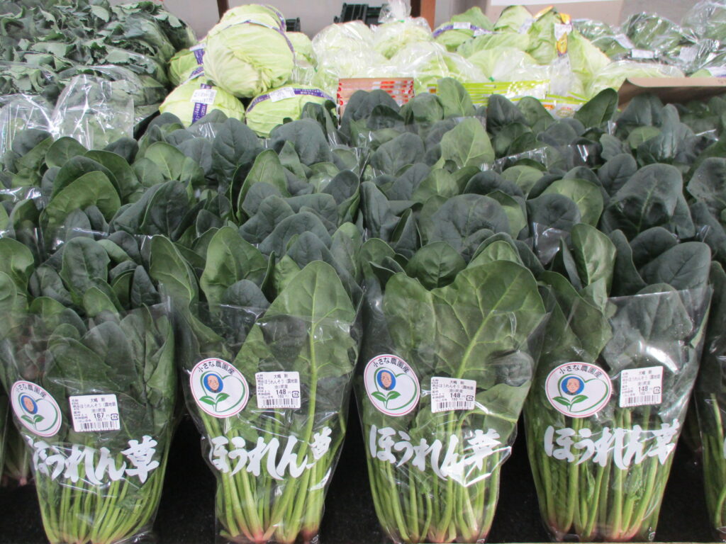 ふきのとう、ほうれん草、小松菜、キャベツ等の地元産の葉物野菜も入荷が増えてきました。