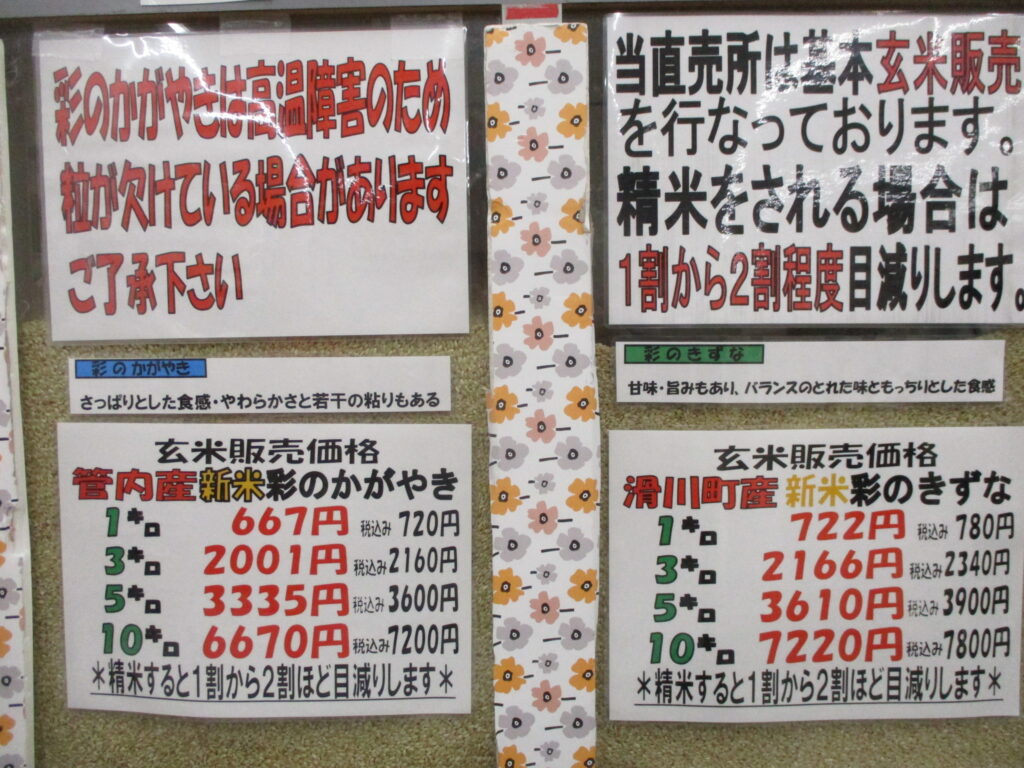 彩のきずな5kg¥3900、彩のかがやき5kg¥3600です。
