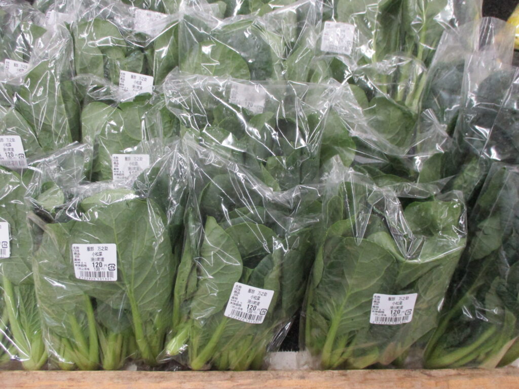 また、さつまいも、小松菜、大根、白菜などの地元産の野菜も入荷しています。