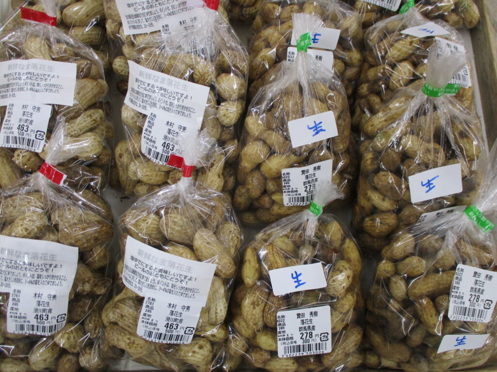 また、生の落花生、小松菜、かき、里芋、ミニトマト、かぶなどが入荷しています。