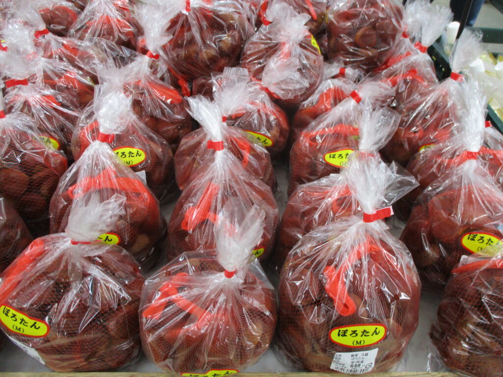 10/18(土)19(日)で「ぽろたん」の焼き栗を販売致します。前回は多くの方にご購入いただき大変ありがとうございました。甘くて香ばしい焼き栗をぜひ味わってみて下さい。店内には生の「ぽろたん」も販売しております。