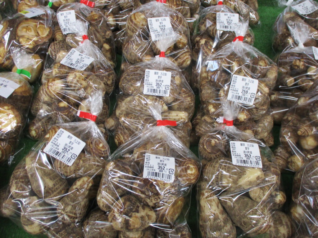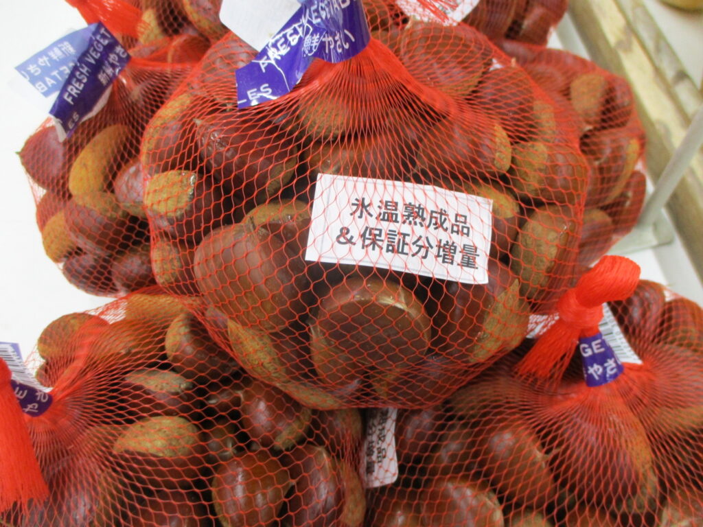 大根、ブロッコリー、キャベツ、さつまいも、かぶ、ほうれん草、かき、渋柿は下段にご用意してあります。氷温熟成した栗、ほうれん草、小松菜、さといも、たけのこ芋など豊富に入荷しております。