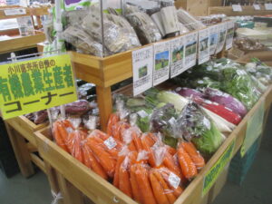 小川直売所の有機農業の生産者コーナー、