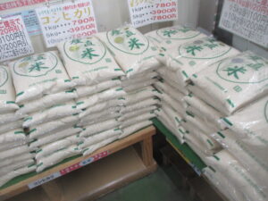 「新米ウィーク」最終日ということで、お米カードポイント2倍のサービスや、お米10kg以上お買い上げでの玉ねぎ1袋プレゼント及びDMハガキご持参の方へのお漬物プレゼントなどの各種サービスは本日までとなっております。