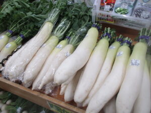 本日は白菜、大根などの秋冬野菜に、小川町産の新米、各種果物類など様々入荷しております。