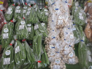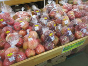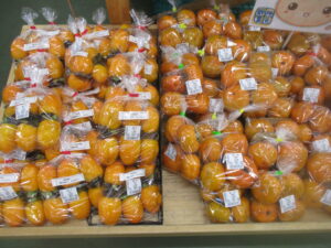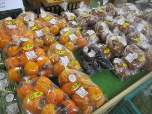 地元産のキャベツが出始めた他、大根、かぶ、銀杏、さやいんげん、干し柿用の渋柿など種類豊富に並んでおります。