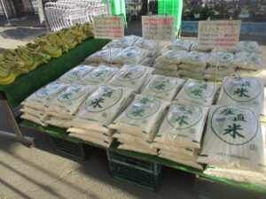 本日も外売りコーナーでは美味しい新米の他、白菜、大根、干し大根や各種果物類を販売中です。