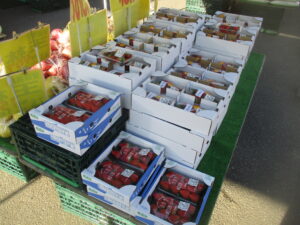 本日も白菜、大根、キャベツ、人参などの地元野菜の他、果物ではみかん、リンゴ、苺などを入荷しております。