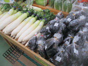 本日は大根、白菜、長ねぎなど、地元野菜が種類豊富に並んでおります。